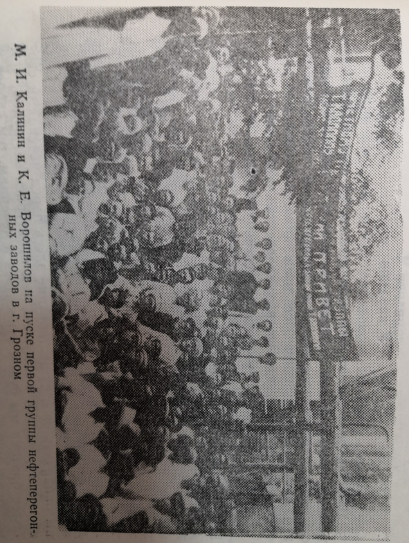 КАЛИНИН. Товарищи! …Вы все и особенно молодые работники должны проникнуться мыслью, чтобы общими усилиями создать лучшее будущее, и всякий, кто будет работать на этом поприще, всякий молодой работник, выдвинувшийся из чеченцев, получит полное удовлетворение. Разрешите мне пожелать, чтобы ваша молодая изрождающаяся интеллигенция, которую мы сейчас видим в своей среде, весь свой ум, всю свою энергию направила на благо и на интересы чеченского народа. Эти интересы тесно связаны с укреплением, с окончательной победой Советской власти.