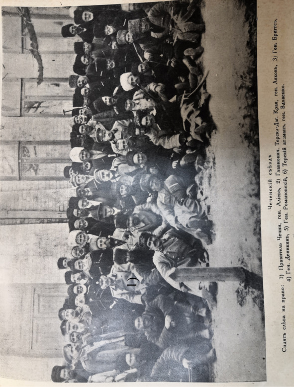 Стр. 214. Приказом Деникина №1101 от 1 (14) июня 1919 года сформирована Чеченская конная дивизия в составе четырех чеченских и кумыкского полков. Ее командиром стал генерал-майор Александр Петрович Ревишин, фигура весьма колоритная.