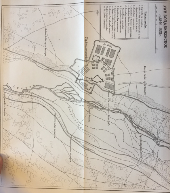 С самого прибытия Генерала Ермолова с войсками на реку Сунжу, Чеченцы производили беспрестанные нападения на передовые мосты, и нередко в ночное время приближались к самому лагерю, или появлялись на левом берегу Сунжи, угрожали провиантским транспортам и пасущимся табунам; к чему способствовали леса по обеим сторонам реки, скрывавшие их движение, и множество бродов, прикрыть коих вначале не было возможности, потому что все войска соединены были в одном пункте для производства работ. Посему Генерал Ермолов вынужден был призвать еще один батальон Кабардинского пехотного полка и несколько казачьих команд, которые, заняв многие переправы по реке Сунже, лишили Чеченцев удобства переправляться на нашу сторону. Основание крепости Грозной имело весьма важные следствия. Чеченцы, водворившиеся между Сунжею и Тереком на наилучших землях, в отношении к Русскому Начальству называли себя мирными, а в сущности состояли из первейших разбойников, причинявших значительный вред левому флангу линии; но заметив, что с построением крепостей по Сунже, хищничества их будут невозможны, начали оказывать совершенное повиновение; и даже жители ближайших к Сунже деревень, дотоле непризнававшие над собою никакой власти, начали исполнять требования Генерала Ермолова, и давали для проходящих команд подводы и конвой. Желая же показать свое усердие, без всякого требования выставили во многих местах свои караулы для извещения Генерала Ермолова о движениях Чеченцев, и охраняли все пространство между преградным станом и крепостью Грозною, составляющее около 45 верст, и незанятое нашими разъездами.