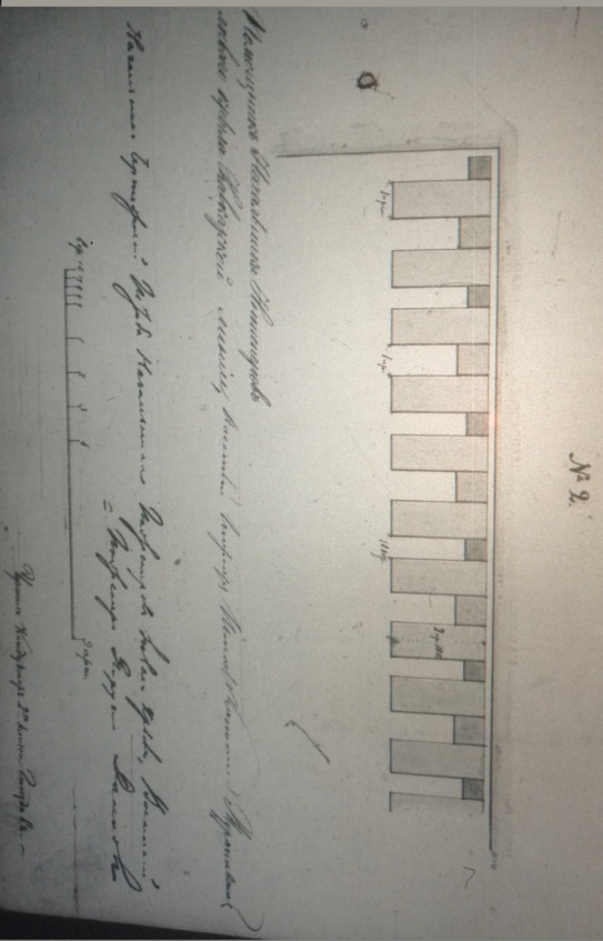 Если по мнению вашему окажется полезным изменить фасон мебели относительное число покорнейше прошу Вас немедленно приказать сделать необходимые чертежи. Л. 7 Командующему войсками Левого Крыла Кавказской линии господину генералу адъютанту и кавалеру графу Евдокимову. От заболезнию начальника инженеров левого крыла Кавказской линии помощника его, военного инженера штаб капитана имею честь донести что построенная по чертежу составленному военным инженером Ремером, спальная мебель как то: кровати, столики, и табуреты для горской начальной школы крепости Грозной, – будут вполне соответствовать свое цели. Что-же касается до относительного числа столиков и табуретов при 60 кроватях, то долгом обязывающего присовокупить что при размещении кроватей по середине комнаты или при стенах расставляя в промежутках кроватей как показано на предлагаемом при сем плане по переменно табурет и столик, потребуется при четном числе кровати в один ряд: столиков половинное число, противакроватей, табуретов же больше одним; при нечетном же числе кроватей необходимо будет как столиков так и табуретов поровну; – а по тому число столиков и табуретов будет зависимы от величины комнаты в которых будут размещены в спальне школы; но во всяком случае для 60 кроватей необходимо сделать 30 столиков и 30 табуретов и если может оказаться недостаток только в одних табуретах от двух до трех штук пре провоженной чертеж мебели в пяти экземплярах превыше означенном предписании №186 имею честь представить вашему сиятельству.