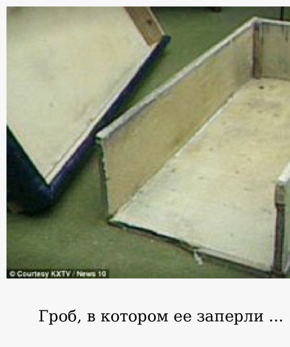 Постепенно стало таковым распорядком дня для жизни Каллен, принявшей в гробу более двадцати часов в сутки, а затем выводившей ее на короткое время помочиться и получить немного еды и подвергавшей пыткам.