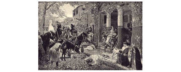 Когда он вернулся в свой дом и было позже несколько жен и между ними вспыхнула ревность, когда от гнева одной из своих жен, названной «биллинг оф», она смогла обмануть его своим утверждением, что видела, как одна из его жен состояла в родстве с рабом его слуг, сказав Аттиле убить их вместе, а позже узнав, что «биллинг» на свою хитрость зарезал и съел ее детей, это дело усилило дурную славу Аттилы, которая распространялась в народе, пока не дошел слух, и потому называлась различными названиями ужаса, такими как «день смерти». расчет.. кнут Божий, кара небесная».. Ирония заключается в том, что Аттила извлек выгоду из своей репутации в двух направлениях: они влияют на моральный дух римлян, представляют собой защитный щит племен гуннов, с другой стороны обеспечивают выживание рас гуннов под его властью.
