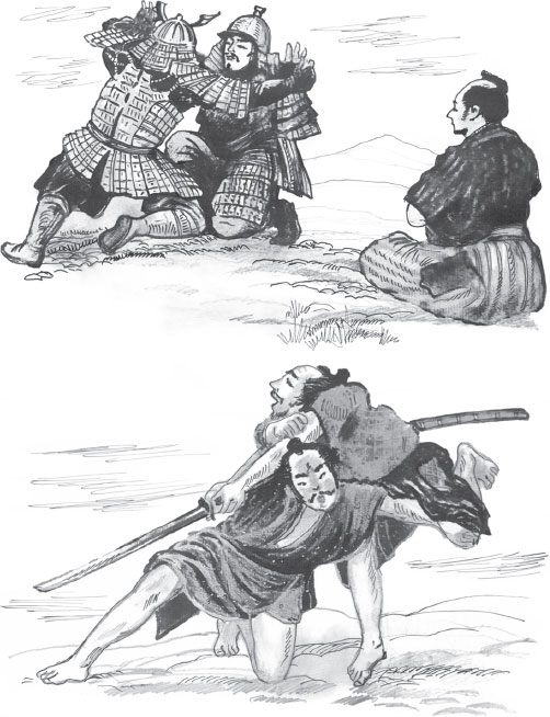 Спортивные состязания борцов, активно практиковавшиеся в те далекие годы, назывались «тикара-курабэ» – «соизмерение сил», поскольку исход поединков определялся не столько техникой, сколько силой, натиском и боевым задором. Именно эти качества были основными в сумо – древнейшем виде рукопашного боя. Этому воинскому искусству посвящена одна из следующих глав нашей книги. Пока же нас сумо интересует как один из истоков дзю-дзюцу. Техника сумо в те годы (а историки первые достоверные сведения о сумо относят к 642 году, когда по указанию императора при дворе состоялись состязания в честь корейского посла, более ранние сведения следует отнести к легендам, мифам) была достаточно проста и включала в себя толчки, сбивы и заваливания. В почете были сила и вес борца. Победа присуждалась участнику, бросившему соперника наземь. Удары и борьба в партере не практиковались.
