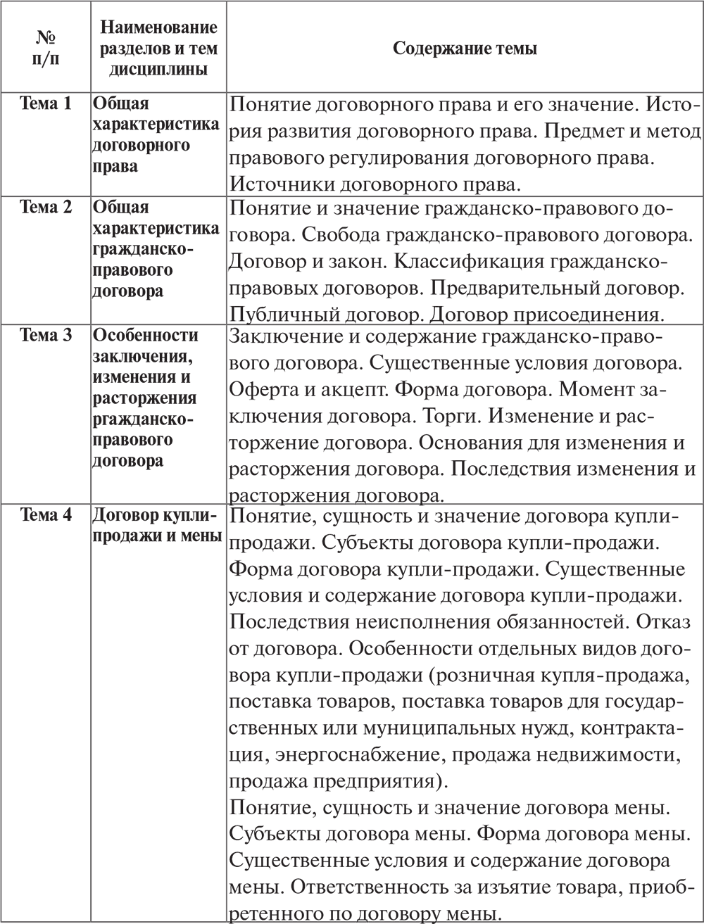 Цель: формирование у студента знаний об особенностях заключения, изменения и расторжения гражданско-правового договора и способности применять данные знания в правоприменительной деятельности.