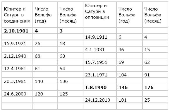 Соединение и оппозиция планет-гигантов и солнечная активность