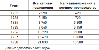 В целом, капиталовложения в предвоенную экономику Германии, согласно данным авторов «Истории Великой Отечественной войны Советского Союза 1941–1945 гг.»[9], по годам выглядят следующим образом:
