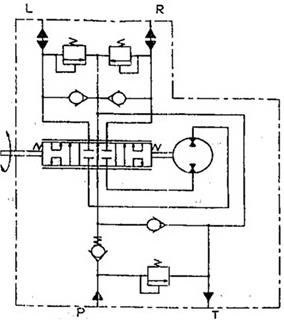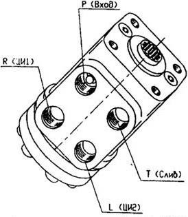 Р – нагнетание (вход); R – управляющая гидролиния, подача при правом повороте; L – управляющая гидролиния, подача при левом повороте; Т – слив