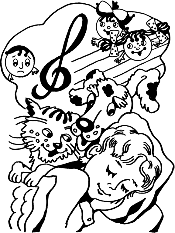 Настал вечер. Пришла пора ложиться спать. Маленькому Человеку хотелось снова попасть в Страну Звуков. Он поскорее лёг в постель, устроился на правом боку, как вчера, закрыл глаза и стал слушать. Слушал, слушал и не заметил, как заснул.