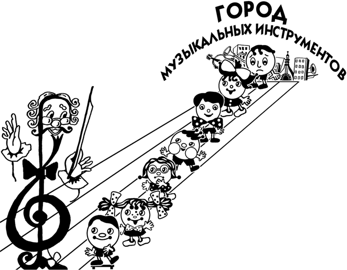 – Приветствую вас, новорождённые жители Страны Звуков! Мы отправляемся сейчас в путь к Городу Музыкальных Инструментов. Там живут образованные, учёные звуки. Постепенно и вы подрастёте и научитесь многому. В путь!