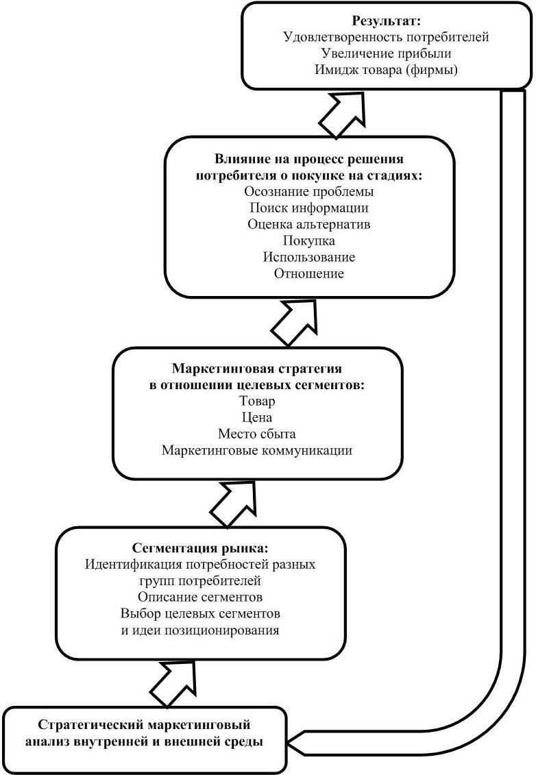 Определив целевой сегмент, можно приступать к проработке функциональной маркетинговой стратегии, включающей все элементы комплекса маркетинга и основанной на идее позиционирования, чтобы потребитель не получал разнонаправленных сигналов о продукте (например, в рекламе указывают на исключительные свойства и престижность потребления, а продукт внешне не привлекателен и продается в дискаунтерах).