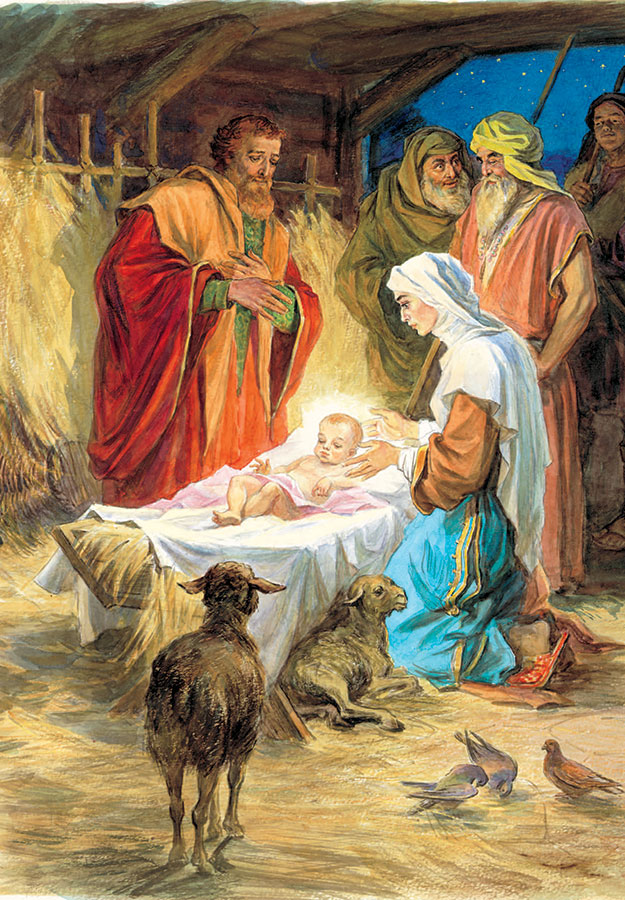 Иудея была провинцией Рима, и правивший в те годы кесарь Август повелел провести перепись населения по всей империи. И пошли все записываться каждый в город, где родился. Иосиф, к тому времени ставший мужем Марии, принадлежал к роду Давидову, который происходил из Вифлеема, туда и отправился Иосиф со своей беременной женой Марией. В городе было много пришлых людей, а потому Марии с Иосифом не удалось найти места в гостинице. Пришлось им поместиться в хлеву. И тут пришло Марии время рожать. И родила Она Сына, спеленала Его и положила в ясли – кормушку для скота. А по прошествии восьми дней, как и полагалось по закону, нарекли младенца. Дали Ему имя Иисус – как наказал Иосифу ангел, явившийся ему перед рождением ребенка. Когда пришло время, понесли новорожденного, как того требовал закон, в Иерусалимский храм, чтобы посвятить младенца Господу. А жил в это время в Иерусалиме некий старец Симеон, которому было предсказано, что не умрет он, пока не увидит Христа Господа. И в тот же самый день, когда родители принесли Иисуса, пришел в храм и Симеон. Увидев младенца Иисуса, он взял Его на руки и сказал: «Ныне отпускаешь раба Твоего, ибо видели глаза мои спасение Твое». А Иисуса стали потом называть Христос или Мессия, что означает «избавитель человечества» или «помазанный Богом». Называли Его еще и Сын Человеческий, и Спаситель, и Царь Иудейский. А еще называли Его Агнец Божий.