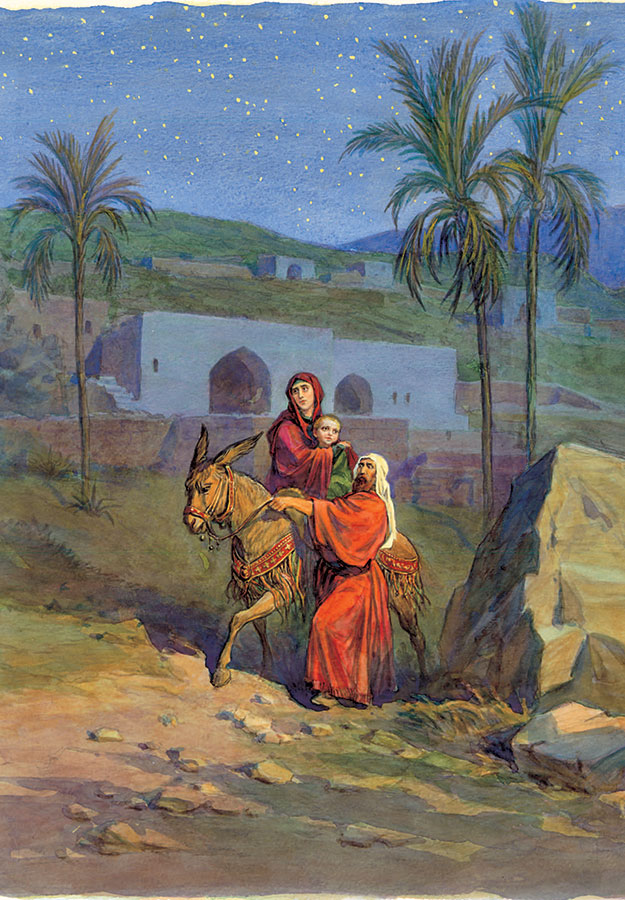 В ту же ночь явился к Иосифу во сне ангел Господень и сказал, что Ирод ищет Иисуса, чтобы погубить Его. А потому Иосиф должен взять Младенца и Его Мать и немедля отправляться в Египет и оставаться там, пока он, ангел, не даст ему знать.