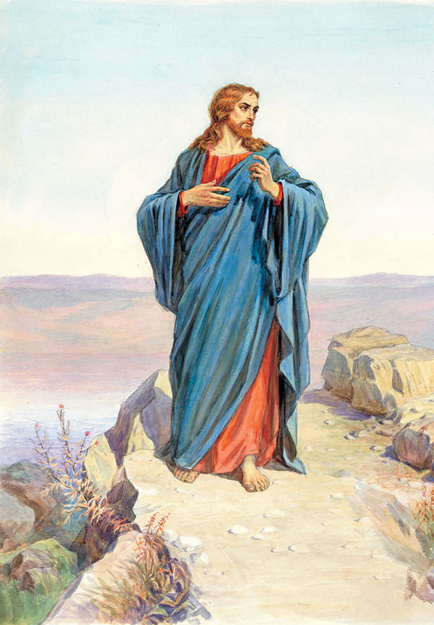 После крещения Дух Святой повел Иисуса в пустыню, где Он стал поститься. По прошествии сорока дней и сорока ночей поста Иисус очень ослабел и испытывал сильный голод. И тут Его посетил дьявол, который попытался искушениями сбить Иисуса с пути истинного. Сначала дьявол сказал: «Если Ты сын Божий, скажи, чтобы эти камни сделались хлебами». На это Иисус ответил ему, что не хлебом единым живет человек, а всяким словом, исходящим из уст Божьих. Тогда дьявол перенес Иисуса в Иерусалим, поставил его на крыло храма и сказал: «Если Ты сын Божий, бросься вниз – ангелы подхватят и на руках понесут Тебя, и Ты не разобьешься о камни». Но Иисус ответил, что не станет испытывать Бога. И тогда в последний раз попытался дьявол сбить Иисуса с пути истинного. Он возвел Иисуса на высокую гору, показал оттуда все царства мира и предложил: «Я отдам все это Тебе, власть над всеми царствами и славу их, потому что она принадлежит мне и я кому хочу, тому и дам ее. Итак, если только Ты поклонишься мне, все это будет Твое». Но ответил дьяволу Иисус: «Отойди от меня, сатана, ибо написано, что только Богу должно поклоняться, только Ему одному должно служить». Окончив свое искушение, отошел дьявол от Иисуса, а Он после этого в силе духа вернулся в Галилею, и слава о Нем разнеслась по всем окрестностям. А когда пришел Он в синагогу, подали Ему книгу пророка Исаии, и Он прочел: «Дух Господень на Мне; ибо Он помазал Меня благовествовать нищим и послал Меня исцелять сокрушенных сердцем, проповедовать пленным освобождение, слепым прозрение, отпустить измученных на свободу». А вскоре Он поселился в городе Капернауме и с того времени начал проповедовать и говорить: «Покайтесь, потому что приблизилось Царство Небесное». И с этого началось служение Иисуса, которому было в то время тридцать лет. И продолжалось это служение три года.