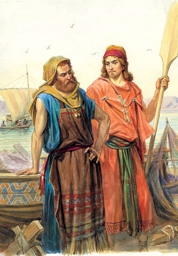 Вскоре, проходя близ Галилейского моря, увидел Иисус двух братьев – Симона, которого называли также Петром, и Андрея, сыновей Иониных. Братья были рыбаками и в этот момент закидывали в воду сеть. Но Иисус позвал их, сказав, чтобы они шли за ним, и тогда они станут не рыбу ловить, а учить людей истине. «Станете ловцами человеков», – так сказал им Иисус. Не задумываясь, братья пошли за ним, став его первыми учениками, или апостолами.