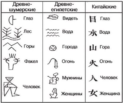 Рис. 2.2. Трансформация знака: от пиктограммы к иероглифу