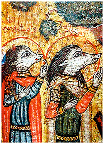 Но самыми удивительными и невероятными насельниками Сарматии были гиппоподы – люди с лошадиными ногами[10], а еще кинокефалы (псеглавцы). Хотя в коптской церкви есть несколько святых с песьими головами, а в православии известен святой псеглавец Христофор, на страницах истории этому народу прежде было отведено место в Индии и в Африке. Северные земли ими впервые «населил» сирийский писатель VII века Псевдо-Мефодий Патарский.
