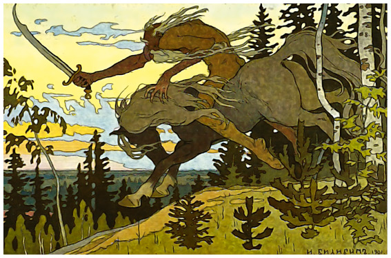 Кащей Бессмертный, иллюстрация И. Билибина к сказке «Марья Моревна», 1903.