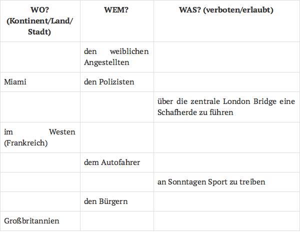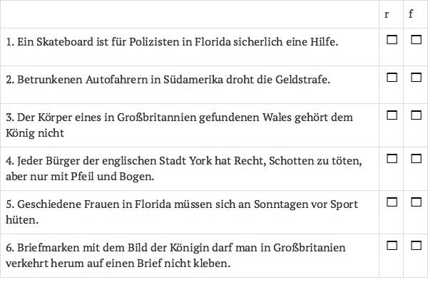 • Es gibt in der Welt sehr viele merkwürdige Gesetze.