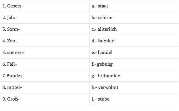 ♪ 2. Aus welchen Komponenten bestehen folgende Komposita? Lesen Sie sie richtig!