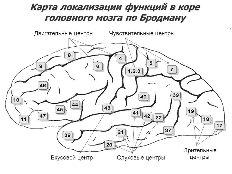 Рис. 4. Карта цитоархитектонических полей по К.Бродману