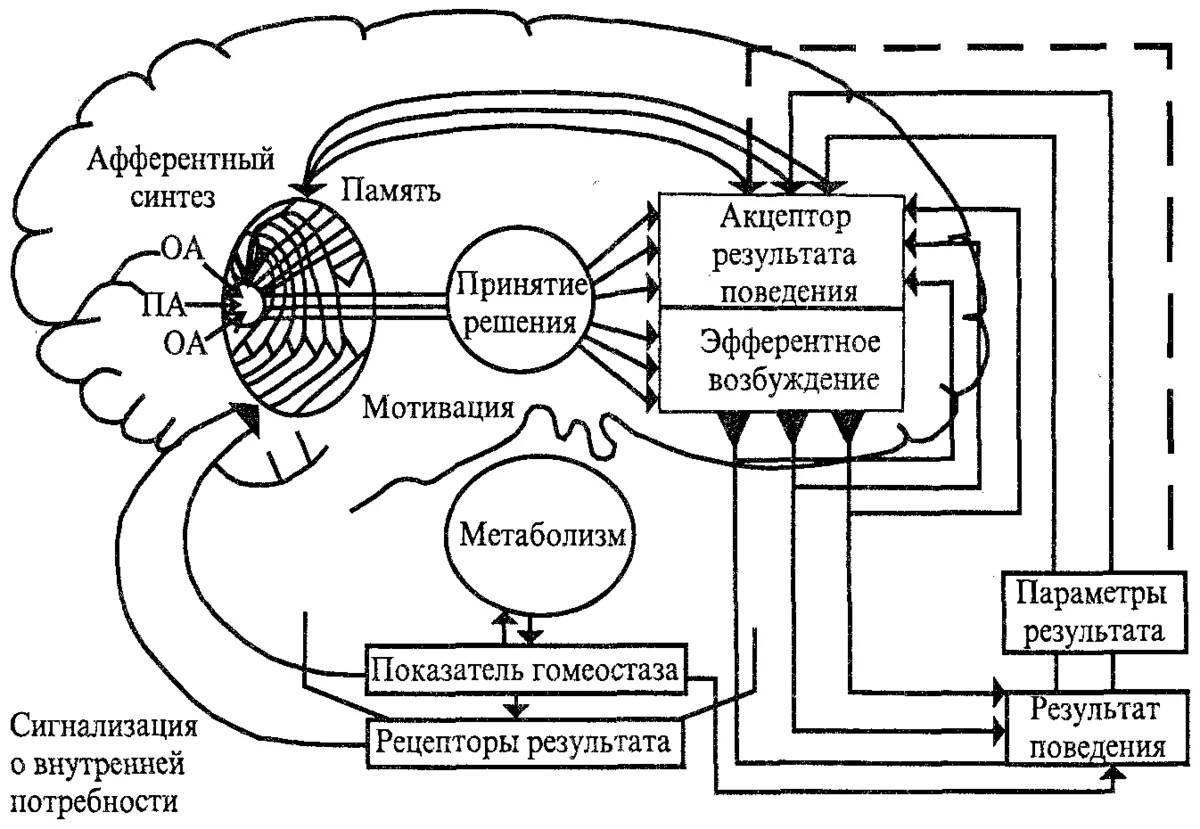 Любая функциональная система, согласно П.К. Анохину состоит из нескольких звеньев (рис.5):