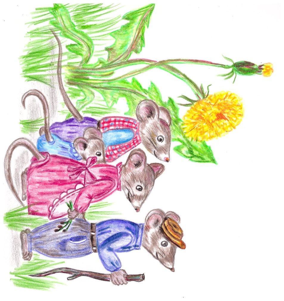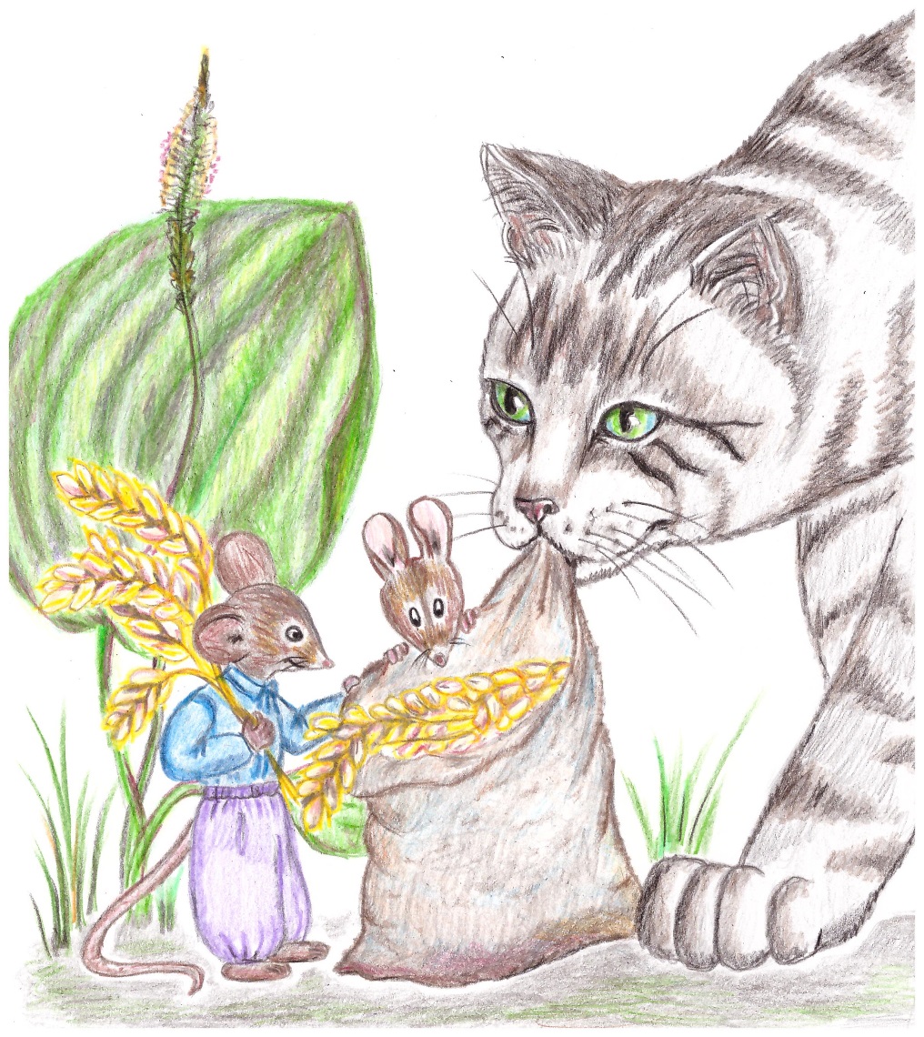Тут изо всех нор полевые мыши начали выбегать, чтобы посмотреть, кто это так громко свистит. Стали зверьки на задние лапки и глазам своим не верят. Кот перед ними стоит. Тут вдруг кот поклонился маленькому народу и заговорил по мышиному. А мыши не перестают удивляться, сколько живут, а впервые к ним кот с поклоном является, да еще и на их языке молвит*.
