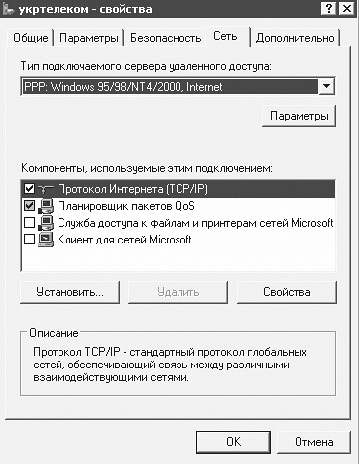 – Тип подключаемого сервера удаленного доступа (вкладка Сеть) – PPP: Windows 95/ 98/NT4/2000, Internet (рис. 1.2);