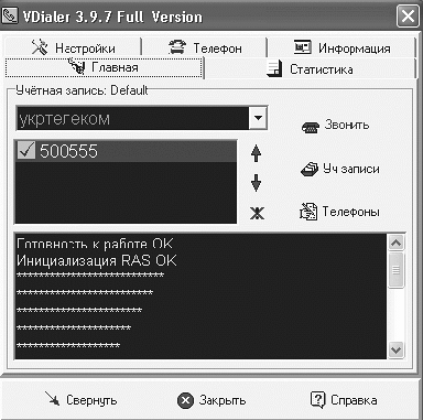 Утилита VDialer (http://v-programs.narod.ru/) – не просто программа для дозвона. В ее функции входит много других сервисных возможностей, так или иначе предназначенных для работы в Интернете при доступе по коммутируемому каналу. После установки VDialer импортирует все созданные ранее удаленные соединения.