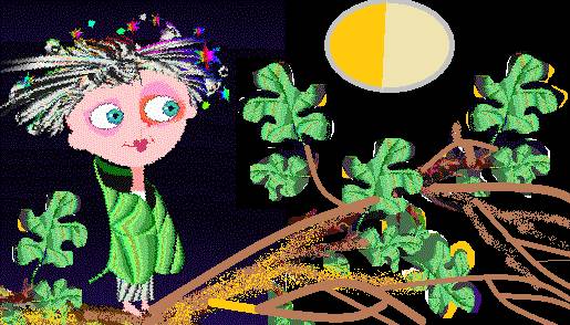 Увидев собравшихся на пикник горожан, разводящих костры и бессовестно оставляющих мусор в беззащитном от вандалов лесу, Кикиморка свешивался с ветки вниз головой с вытаращенными глазёнками. Смешно надувая щёки, он завывал, ухал, охал. И даже рычал. И всё это сопровождалось нежным перезвоном зелёных колокольчиков, растущих, как цветы, на его взлохмаченной головёнке. Но чем больше он старался, тем забавнее выглядел этот маленький зелёный человечек. И всё сильнее начинал напоминать игрушку, обронённую кем-то здесь в лесу. Да и одежда его казалась пёстрым ворохом заплаток, самым причудливым образом скреплённых между собой то английской булавкой, то ярким значком, то чьей-то утерянной в лесу брошкой.