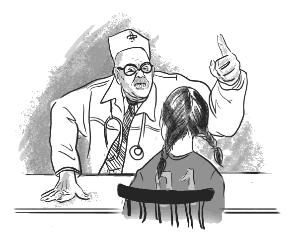– Я – врач. И могу положить тебя в больницу. Не в простую… а в психдиспансер. Вот вызову сейчас санитаров, и они наденут на тебя смирительную рубашку. Будешь знать тогда!..