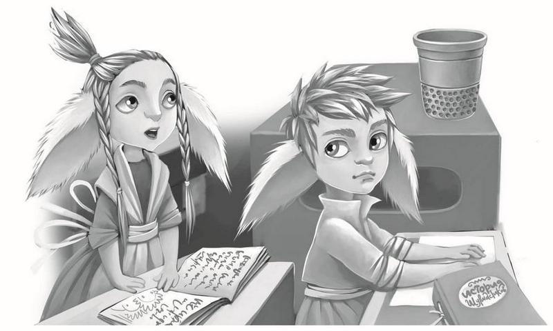 Вот огромное страшное существо пытается затоптать крошку-шуршастика. Существо – это, должно быть, топтун. Вон у него какие ноги толстопятые! А шуршастика я узнал по большим пушистым ушам, красивым выпуклым глазам и маленькому росту. А ещё по четырём пальцам на руках, если эти кривые чёрточки можно назвать пальцами. Вон у топтуна их пять нарисовано. Любой малыш знает, что у топтунов есть лишние пальцы. А ещё у них есть когти! Да-да, на каждом из пяти пальцев. Ужас какой… У шуршастиков пальчики мягкие, без всяких там наростов. И вообще, я считаю, что шуршастики – самые прекрасные существа, которые только могла создать природа. Всё что нужно – при них: и размер идеальный, и красота. Как же мне повезло, что я родился шуршастиком, а не топтуном или кем-нибудь из тех непонятных существ на картинках!