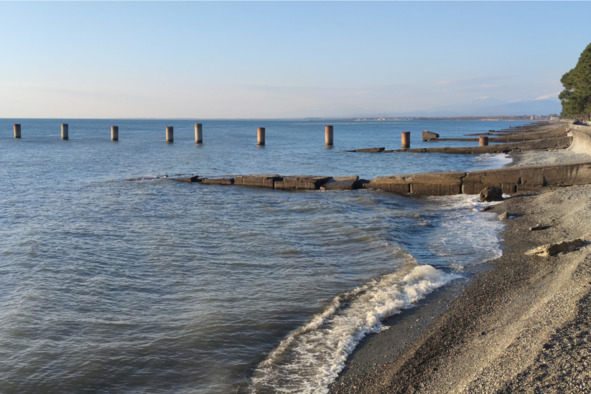 Конечным пунктом нашего маршрута после пересечения границы, местом отдыха и постоянного базирования на все дни экскурсионного тура был тихий населенный пункт Очамчира (Ochamchire), возникший на месте древнегреческого полиса Гюэнос, впервые упомянутого в VI веке до н.э. греческим мореплавателем и географом Скилаком Кариандским, и являющийся в наши дни одним из древнейших городов Абхазии.