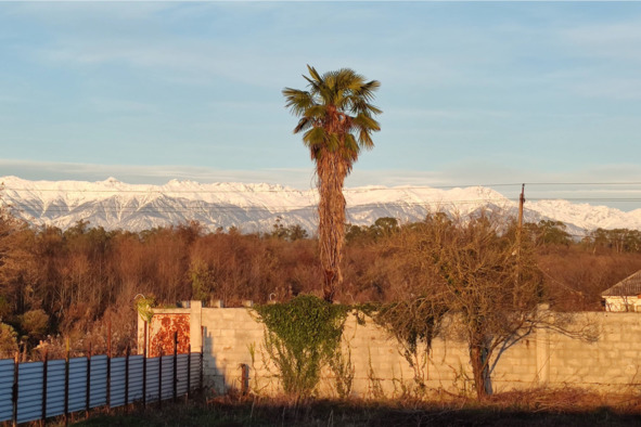 Пальма на фоне заснеженных гор