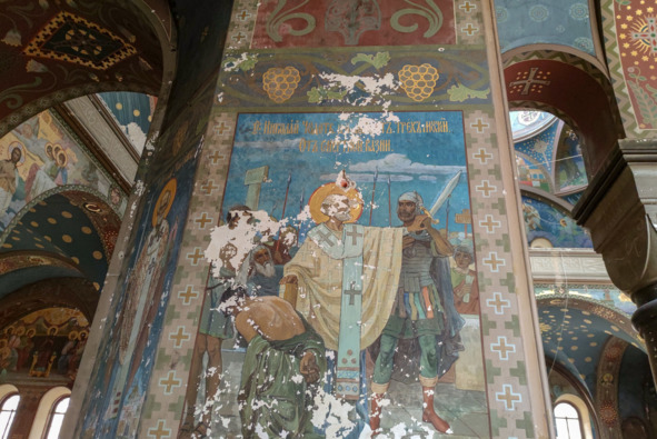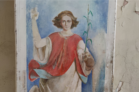 Ангел, фреска в арке надвратного храма