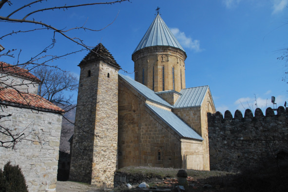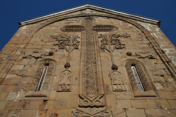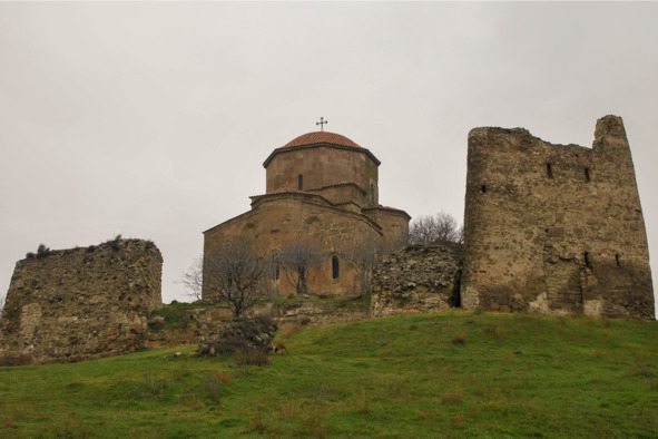 Представьте себе ситуацию. Вы едете с гидом в машине, ведя неспешную беседу и одновременно рассматривая проносящиеся за окном объекты, пока где-то там, в стороне, не показывается нечто особенное, из-за чего ваши глаза начинают светиться от счастья. Гид как бы мимоходом поясняет увиденное вами, заявляя, что это совершенно отдельная поездка, в программу не входит, можно съездить туда в другой день. И так далее и тому подобное. Вы киваете, соглашаясь с собеседником, но, тем не менее, продолжаете по-прежнему неотрывно и восторженно смотреть в сторону понравившегося объекта. Как вдруг понимаете, что он приближается. И вот, через мгновение, вы возле него. Именно так и произошло с нами в начале пути, когда проезжали монастырь-храм Джвари (Jvari), где, по легенде, святая Нина воздвигла крест, сделанный из виноградных лоз, скрепленных ее волосами.