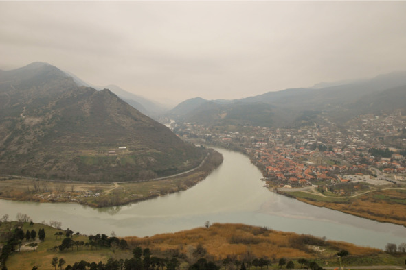 Слияние Куры и Арагви, справа раскинулась Мцхета
