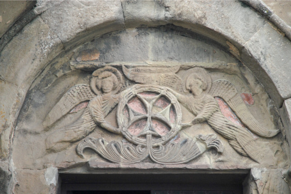 Увидев мою заинтересованность обителью, Зураб решил нас туда завести, минут на пятнадцать, что оказалось вполне достаточным, чтобы побродить по подворью, осматривая довлеющие над округой недалеко от слияния Арагви и Куры постройки VI—VII веков. Там, в Джвари, можно увидеть изогнутый дугообразный крест, воткнутый посреди кандила или, иными словами, подсвечника. Необычность его формы, на мой взгляд, это дань истории, когда кресты делали еще из виноградной лозы, одеревеневший стебель которой со временем приобретал естественный изгиб. Без машины к монастырю подобраться сложно, однако в Грузии считают, что пеший подъем к возлежащему на горе храму укрепляет дух, а значит, делает молитву сильнее.