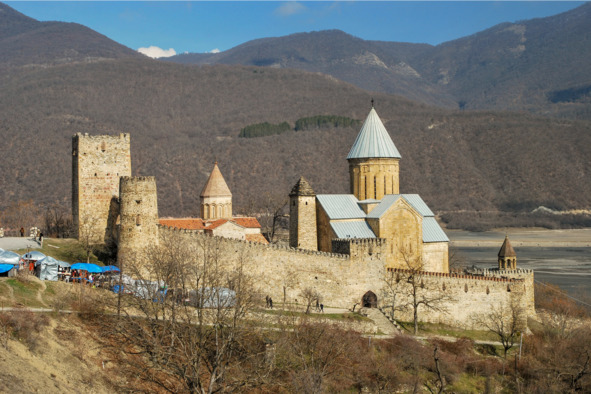 Мы прилетели в Тбилиси 22-го вечером, завезли вещи в отель Marlin, что в нескольких шагах от площади Свободы, да прогулялись по округе, больше ради променада, нежели в попытках что-либо рассмотреть в сгущающихся сумерках. А на следующий день, с самого утра, отправились вместе с Зурабом на первую нашу экскурсию, в Казбеги. Или, если следовать заявленной программе, по маршруту: Жинвальское водохранилище, крепость Ананури, село Степанцминда (Казбеги), Гергетская (Троицкая) церковь и Дарьяльское ущелье.