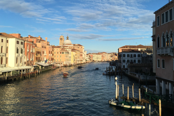 Без казусов, правда, не обошлось. В качестве одного из вариантов размещения в новогоднюю ночь рассматривался курорт Римини, привлекший мое внимание красочными фото из Интернета. Если верить им, этот сказочный городок с яркой расцветкой домов возлежал у небольшой бухты на скалистом склоне. Каково же было мое удивление, когда Google Maps выдали плоскогорье без единого холма и даже намека на возвышенность, не говоря уже о крепости и неприступных стенах. Затем началась эпопея с наводнением в Венеции, первом пункте нашего маршрута. Обрушившийся на город ливень то отступал, усмиряясь, то вновь неистовствовал, заливая всех и вся нескончаемым потоком воды. Официальные сообщения приходили как вести с фронта: редко, кратко и ни о чем. Только благодаря любительским роликам на YouTube удалось прояснить ситуацию, остальное оказалось не столь существенным, включая перелет и переезд на поезде из Болоньи (Bologna) в Венецию.