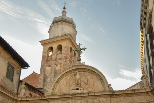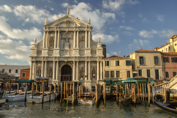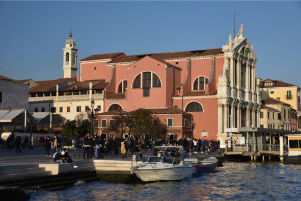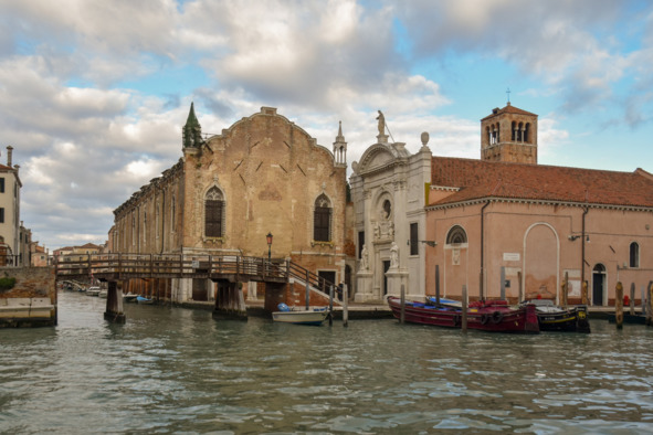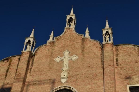 Ниже храм Аббатства Милосердия (Chiesa dell’Abbazia della Misericordia), основанный в X веке и сменивший множество владельцев и обличий, успев побывать и армейским складом при Наполеоне, и лазаретом, и даже апартаментами в наши дни. Или церковь Santa Maria Assunta detta I Gesuiti, которую в XII веке использовали в качестве больницы для бедных, а в 1523 году посетил святой Игнатий Лойола, впоследствии основавший общество Иисуса или иезуитов. Ее монолит колокольни под четырехскатной крышей и венчающие фронтон входа скульптуры видны даже с берегов острова Мурано (Murano).