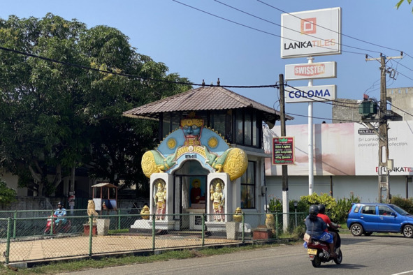 Поэтому основной транспортной артерией Амбалангоды является так называемая Galle Road – трасса, которая тянется с огибанием береговой линии из Коломбо в Галле, но на въезде в центр города, как раз в том месте, где начинается Main Street и расположен музей масок Арияпала (Āriapāla Mask Museum), а это каких-то двести метров от Saga Home, делает резкую петлю, как бы уводя вглубь острова.