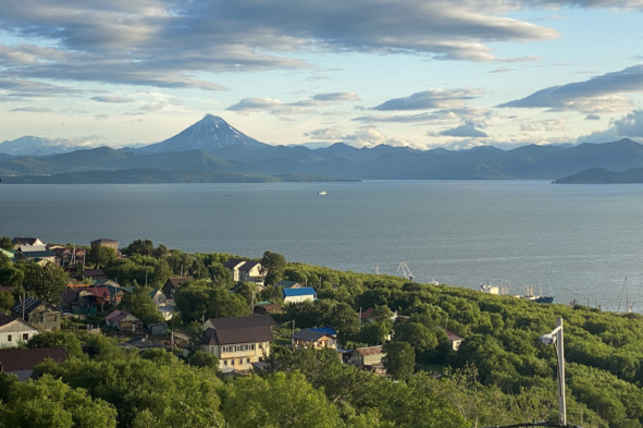 Авачинская бухта, вид на Вилючинский вулкан