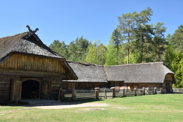 Все сохранилось в своем первозданном виде, за исключением нескольких построек, которые бездумно осовременили красной черепичной крышей, каменным фундаментом или покраской внешнего периметра. Но таких объектов, к счастью, по пальцам пересчитать. А вот памятная мне с 2014 года харчевня осталась той же, как и ряд деревянных столов с лавками под открытым небом подле. Запахи леса, радостный гомоном птах да неспешная трапеза: вкуснейшая гороховая каша, вареный горох со шпиком, кисель из ревеня или чай-кофе с пирожками, скландраусисами (sklandrausis), с овощной начинкой.
