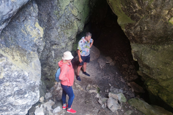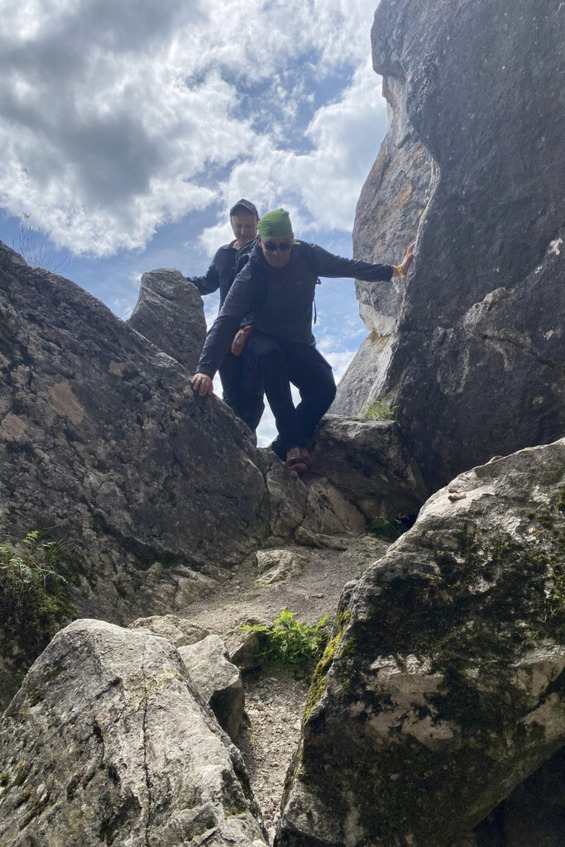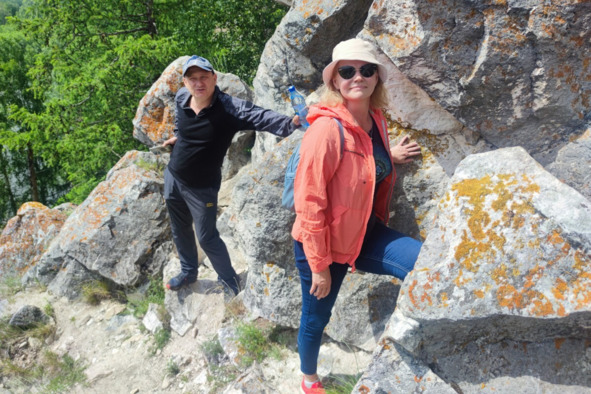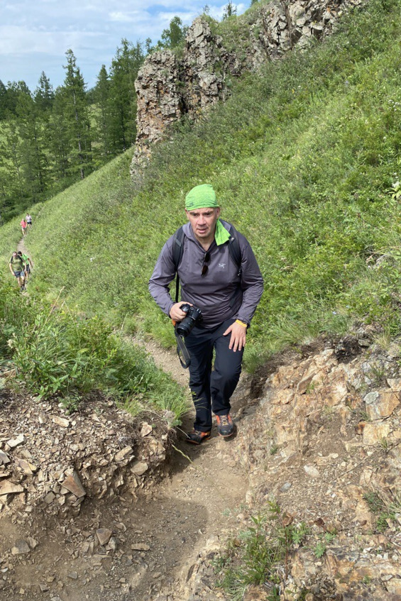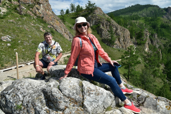 Сопровождающий нас в первые два дня общительный и любознательный местный гид Владимир Сахнов, парень богатырского роста, сразу предупредил и меня, и Надежду об этом, в то время как Евгений рассказал, что взбираться в гору лучше всего мелкими шажками: так проще и силы сберечь, и дыхание не сбить. И вообще, нам с ними очень повезло! Во-первых, у нас не было информационного вакуума; ребята страстно делились с нами историей своего края, старательно отвечая на все наши вопросы. Во-вторых, мы никуда не торопились, но при этом везде успевали. И даже имели возможность куда-нибудь по дороге заехать или где-нибудь остановиться, чтобы погулять. И, в-третьих, мы с ними чувствовали себя в полной безопасности, особенно когда приходилось штурмовать кручи и спускаться по отвесным участкам.