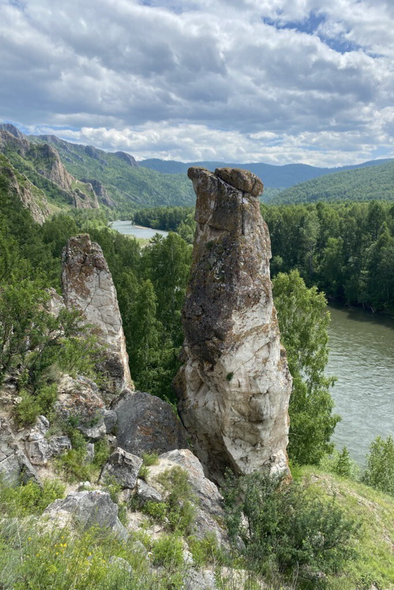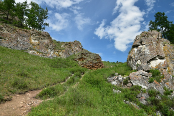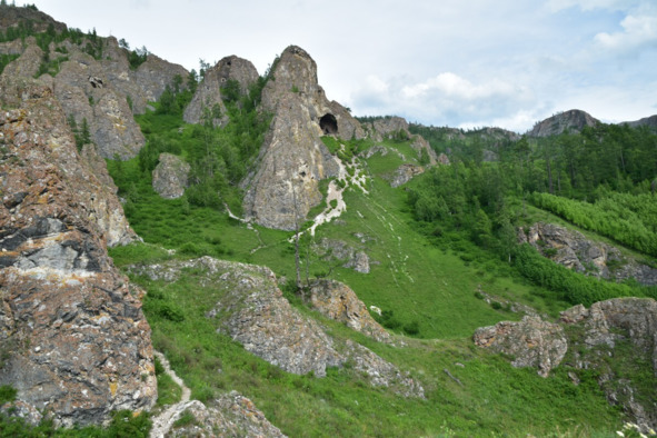 В самом гроте, по большому счету, делать абсолютно нечего, разве что заглянуть в него ради собственных ощущений, как-никак в годы Гражданской войны здесь прятался отряд Соловьева. Да и сейчас в его чреве легко сможет уместиться в полный рост небольшая группа туристов, однако спускаться в грот нужно с предельной осторожностью. По одной из легенд, его своды сильно пострадали от безжалостного обстрела и детонации хранящихся тут боеприпасов, поэтому не исключены обвалы. Во всяком случае на входе очень много огромных глыб, наваленных в хаотичном порядке. Зато сужающаяся вглубь пещера имеет противоположный выход, который, правда, уже частично завален камнями, но если вам все же удастся протиснуться в лаз, то вашему взору откроется великолепный вид на долину реки Белый Июс и скалы-останцы: один из них издали напоминает вытянутый вверх указательный палец, а вблизи – рукоять кинжала.