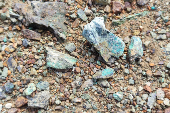 Но это так, к слову, в виде небольшого, но очень важного, на наш взгляд, отступления. А пока же впереди нас ждала небольшая остановка возле древнего рудника, о котором, видимо, упоминал еще Павел Проскуряков, говоря, что «из-под известняков к востоку от улуса Тохзас местами замечаются выходы гранита с жилами рудного кварца и выходы порфиров. Кварцевые жилы содержат в себе медную руду, которая когда-то здесь разрабатывалась, что видно по шурфам, на бортах которых находятся большие груды наломанного кварца с медной зеленью, синью и блеклой медной рудой»48. Сам шурф мы, если честно, не видели либо внимания не обратили, все-таки ночной перелет сказался, сознание и без того рассеянным было, а вот зеленоватые камешки нам Владимир показал, а заодно историю о добыче руды поведал…