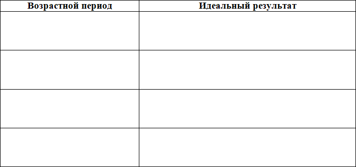 Задание 2Напишите идеальный результат Вашего проекта. Какими качествами или знаниями должен в итоге овладеть обучающийся разных возрастных периодов?
