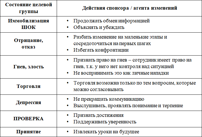 • Недостаток вовлеченности, апатия к инициативам, шок, недоверие к мотивам, вызвавшим перемены.