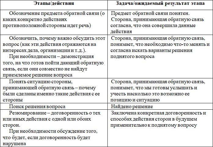Если Вы даете обратную связь, необходимо постараться соблюдать правила обратной связи (см. Приложение 6).