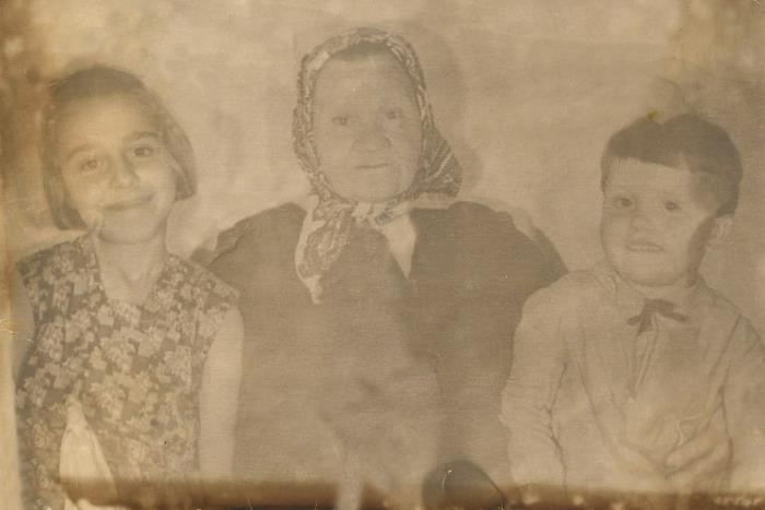 На фотографии слева направо – Надя, бабушка Наталья, Люба (Наде 10 лет, Любе 4 года)